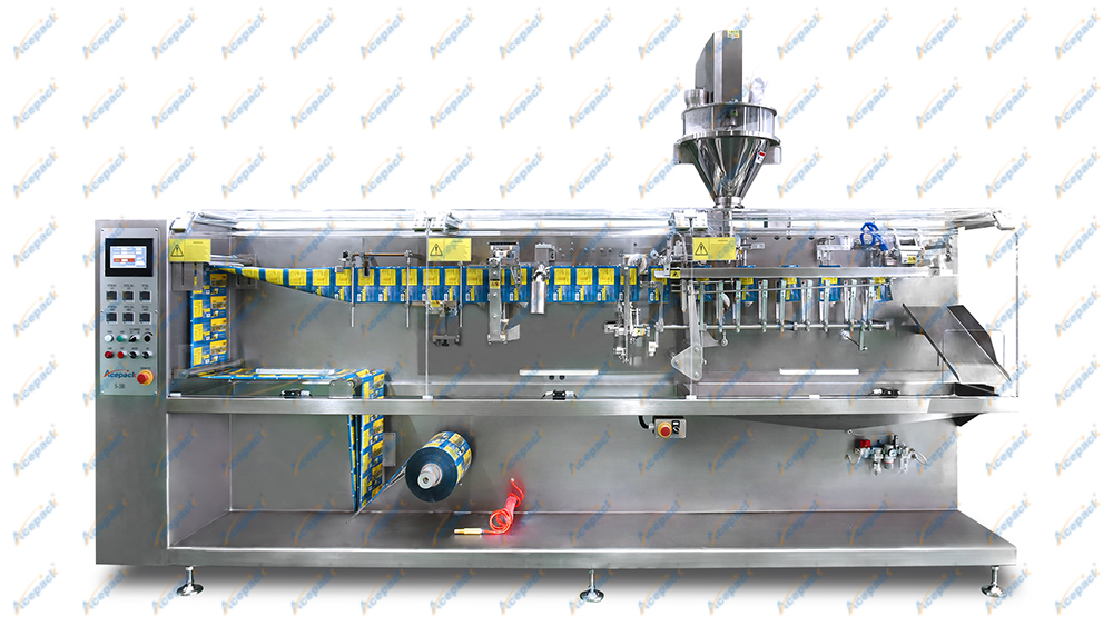 我公司生產(chǎn)的水平式小袋包裝機型可適應(yīng)各種熱封多層復(fù)合膜.它可以自動完成小袋成型,制袋,上下料和灌裝包裝過程.它是小袋快速包裝的整體包裝解決方案.小袋包裝機型系列專用于三邊封或四邊封的平袋,由卷膜,液體或固體填充,熱頂密封形成.它可以實現(xiàn)包裝標(biāo)準(zhǔn)三邊或四邊封的平袋,平袋帶拉鏈,平袋帶直吸嘴或斜吸嘴的全自動包裝。