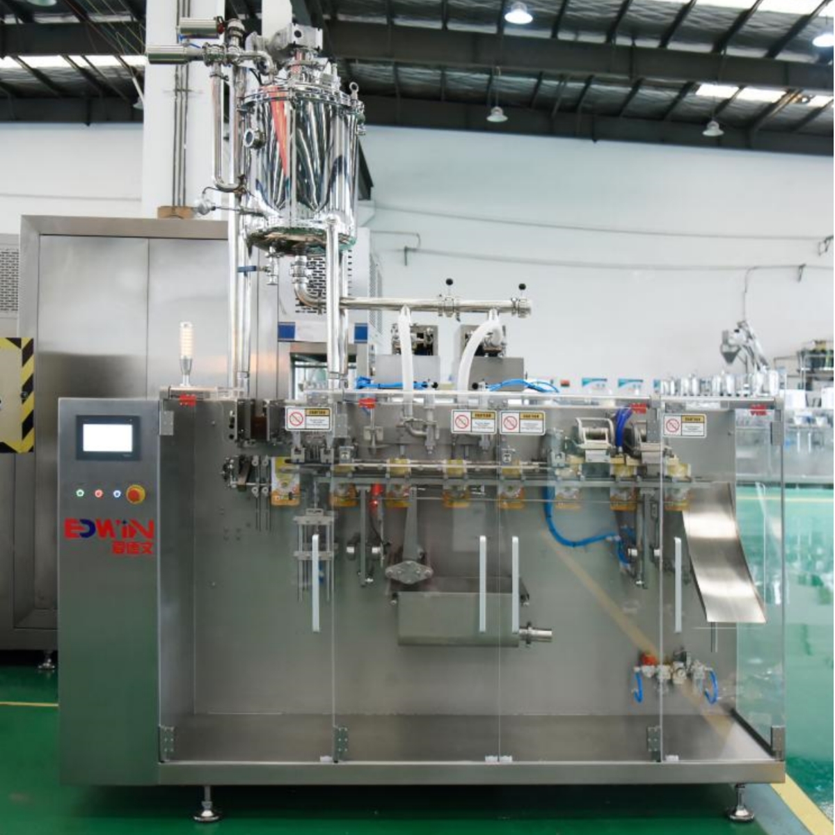 (三)多功能集成 為了滿足市場對產(chǎn)品多樣化包裝的需求,給袋式包裝機(jī)將朝著多功能集成的方向發(fā)展。一臺機(jī)器可能集成多種包裝功能,如充氣、抽真空、貼標(biāo)等,實(shí)現(xiàn)一站式包裝解決方案,提高設(shè)備的利用率和生產(chǎn)靈活性。 給袋式包裝機(jī)作為現(xiàn)代包裝領(lǐng)域的重要設(shè)備,以其卓越的性能和廣泛的應(yīng)用前景,為各行業(yè)的發(fā)展提供了有力支持。隨著技術(shù)的不斷進(jìn)步和創(chuàng)新,相信給袋式包裝機(jī)將在未來發(fā)揮更加重要的作用,推動包裝行業(yè)向智能化、綠色化、高效化方向邁進(jìn)。